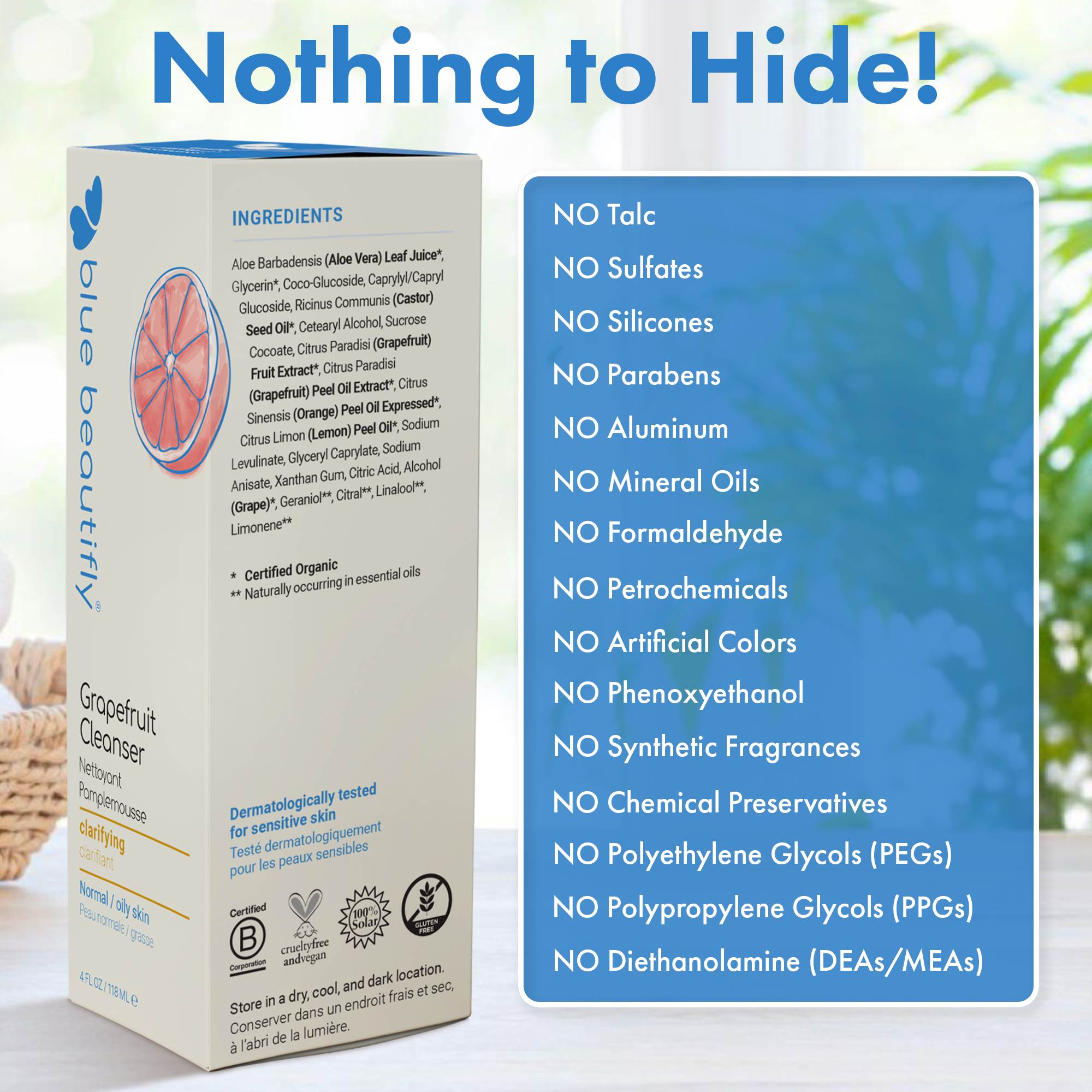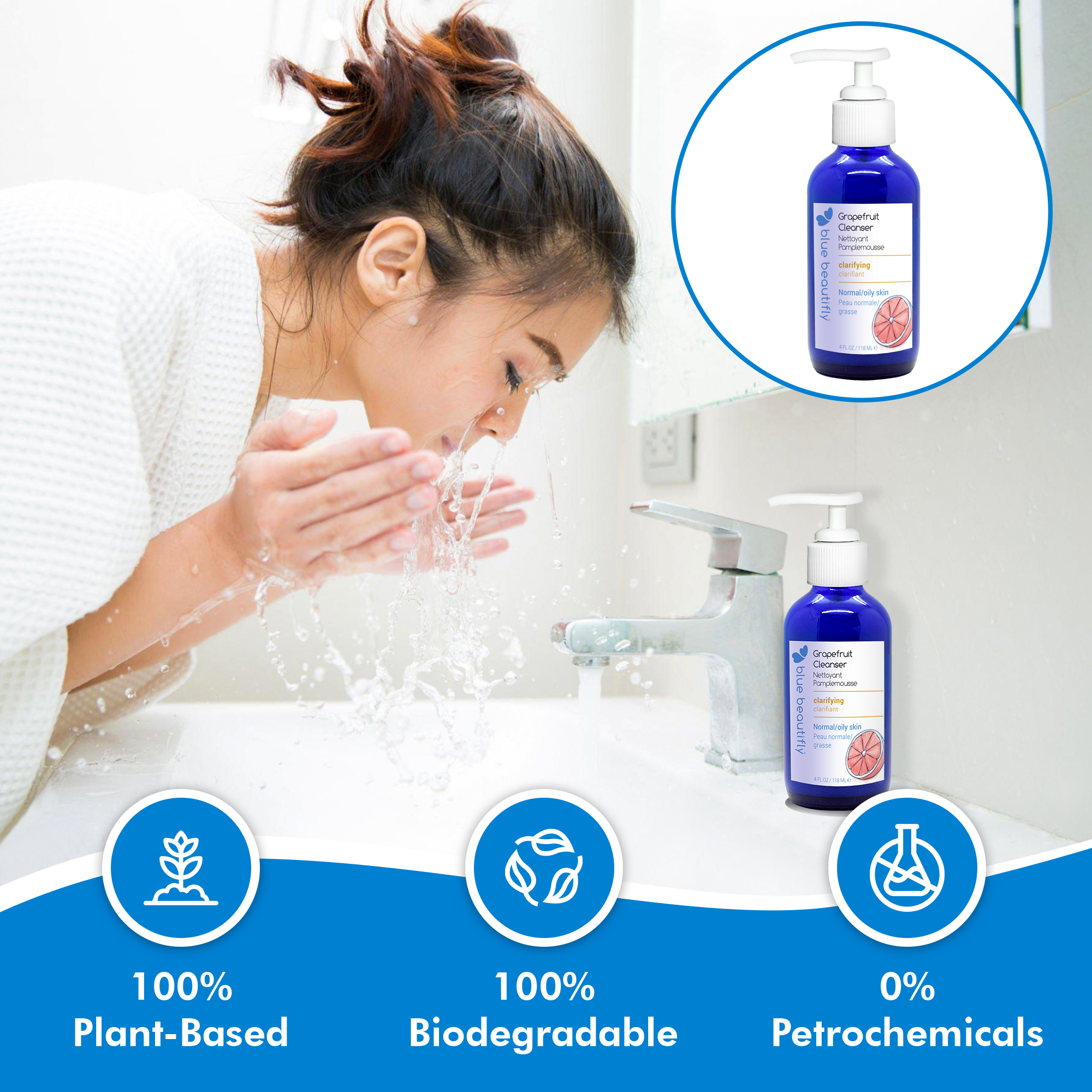 Blue Beautifly Cleansers are 100% plant-based and free of sulfates and synthetic ingredients.